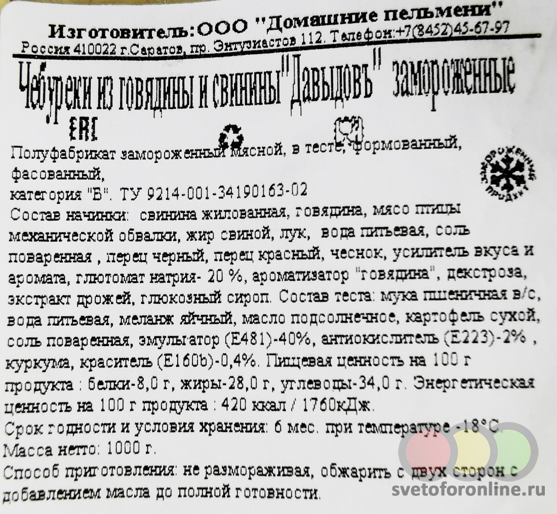 Чебуреки "Давыдовъ" категории Б, 1 кг ООО "Домашние пельмени" - Купить в магазине "Светофор" город Чебоксары, пр-кт И.Я.Яковлева, д 39А